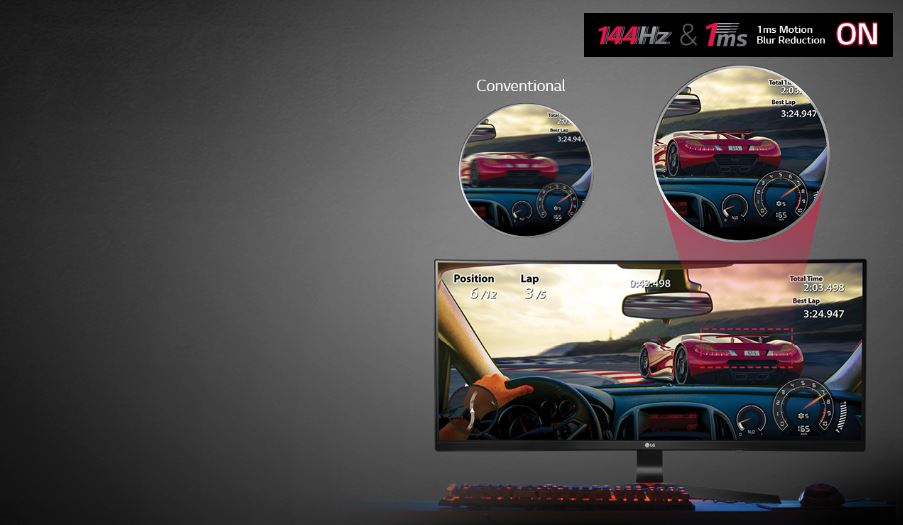 – หน้าจอคอมพิวเตอร์ 21:9 Curved UltraWide™ 34UC79G-B ที่มาพร้อมกับอัตราการรีเฟรชเรทภาพที่ 144hz และเทคโนโลยี Motion Blur Reduction ที่มีการตอบสนองความเร็วเพียง 1 ms เท่านั้น เป็นเทคโนโลยีที่ช่วยให้แสดงภาพเคลื่อนไหวได้อย่างลื่นคมชัดถึงขีดสุดนั้นเอง