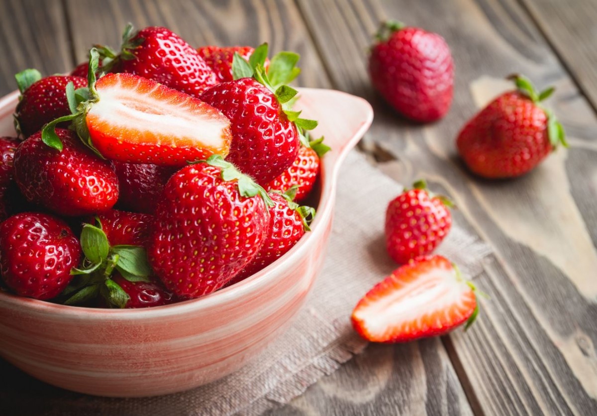 สตรอเบอรี่ ด้วยคุณสมบัติของวิตามินซีที่อยู่ในผลสตรอเบอรี่ ช่วยบำรุงเซลล์เม็ดเลือดแดงของเรา ส่วนเมล็ดเล็กๆที่อยู่ภายในเนื้อสตรอเบอรี่ ช่วยลำเลียงออกซิเจนในกระบวนการขจัดเลือดเสีย ช่วยทำให้ผิวพรรณของเราดูเรียบเนียน ชุ่มชื้น ดูกระจ่างใสยิ่งขึ้น