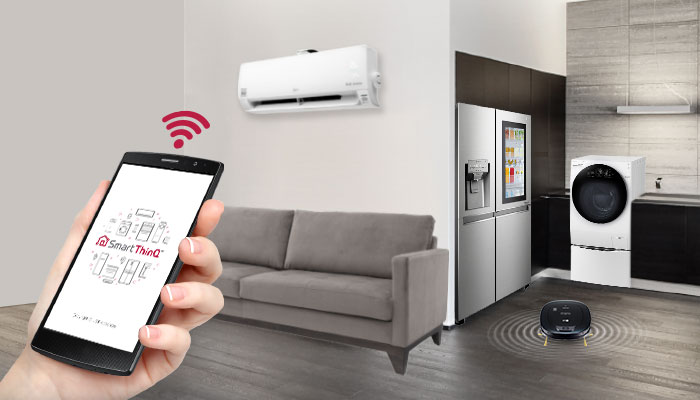 ในปัจจุบันนี้วิถีชีวิตของผู้คนในปัจจุบันกำลังจะเปลี่ยนไป ด้วยการใช้สมาร์ทโฟนเพียงเครื่องเดียวก็สามารถควบคุมเครื่องใช้ไฟฟ้าได้หลากหลายเครื่องผ่านทางแอพพลิเคชั่น LG Smart ThinQTM ที่พัฒนาขึ้นเพื่อให้คุณตรวจสอบ ควบคุม และสั่งงานเครื่องใช้ไฟฟ้า LG ของคุณได้จากทุกที่ทุกเวลาผ่าน Wi-Fi พร้อมออกแบบแอพพลิเคชั่นให้มีรูปแบบเรียบง่าย ใช้งานได้ทุกเพศทุกวัย ช่วยให้ชีวิตคุณง่าย และสะดวกยิ่งขึ้น ไม่ว่าคุณจะอยู่ที่ไหน คุณก็สามารถทราบสถานะของเครื่องใช้ไฟฟ้านั้นๆ ได้ทันที